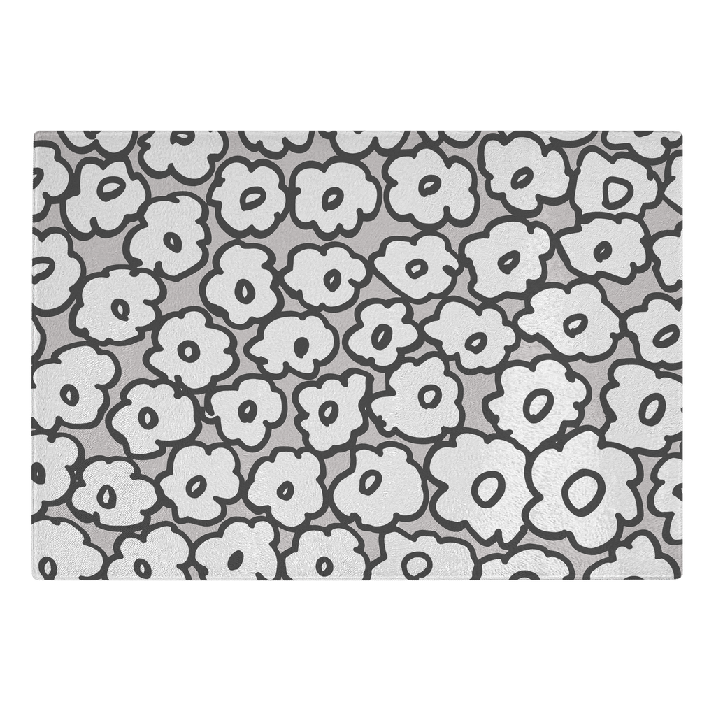 Happy White Flowers | Glass Cutting Board